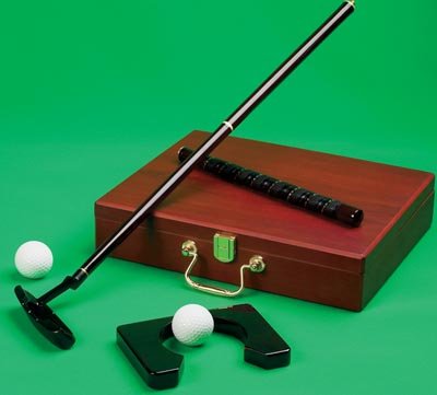 - Set includes:4pc screw together putter 2 golf balls and a wood cup